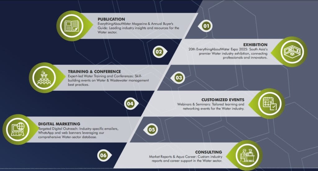 Beyond exhibitions, the Foundation actively engages in training programs, specialized conferences, and capacity-building initiatives aimed at empowering professionals, industries, and utilities with the latest know-how in water management. Its efforts are deeply aligned with the vision of achieving water security, circular economy principles, and the United Nations Sustainable Development Goals (SDG 6).